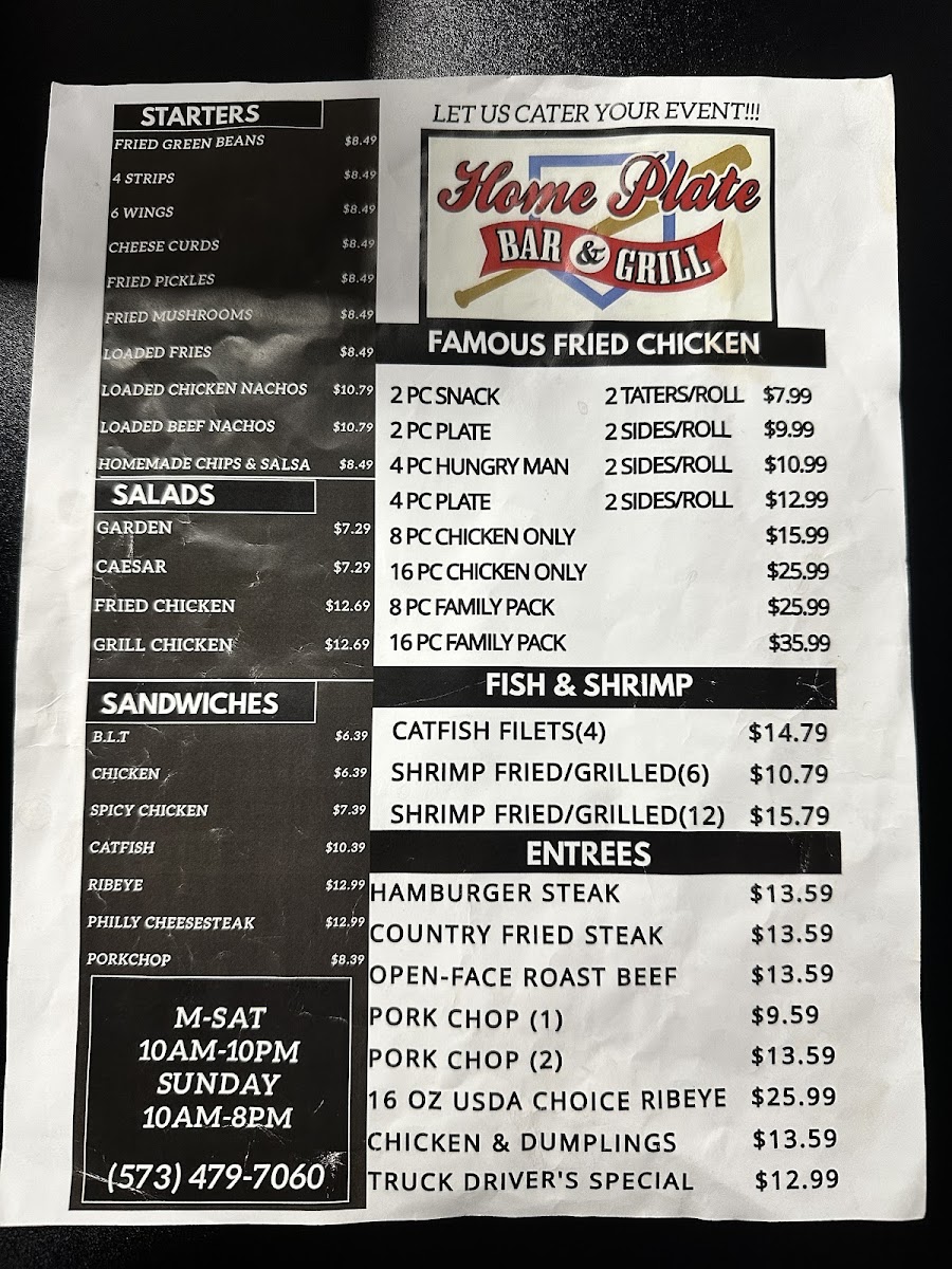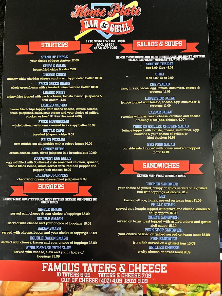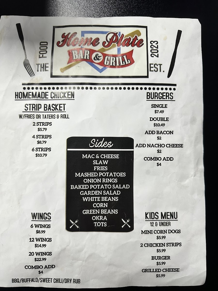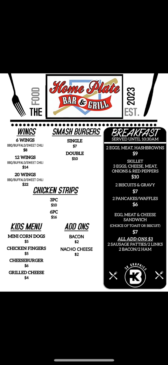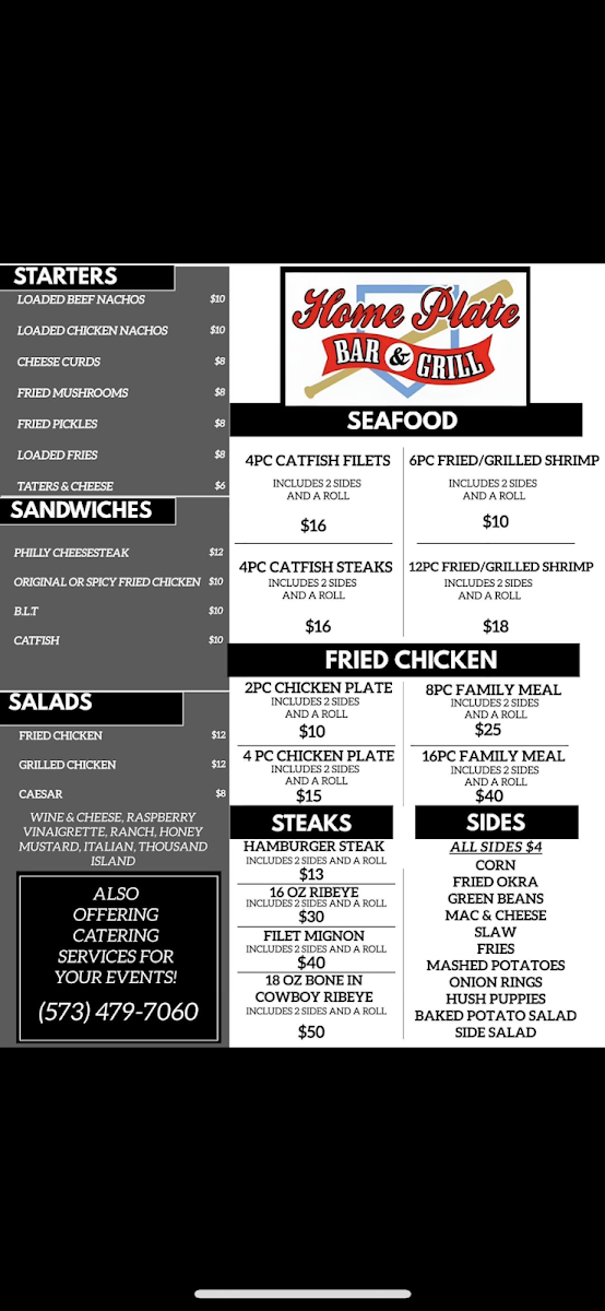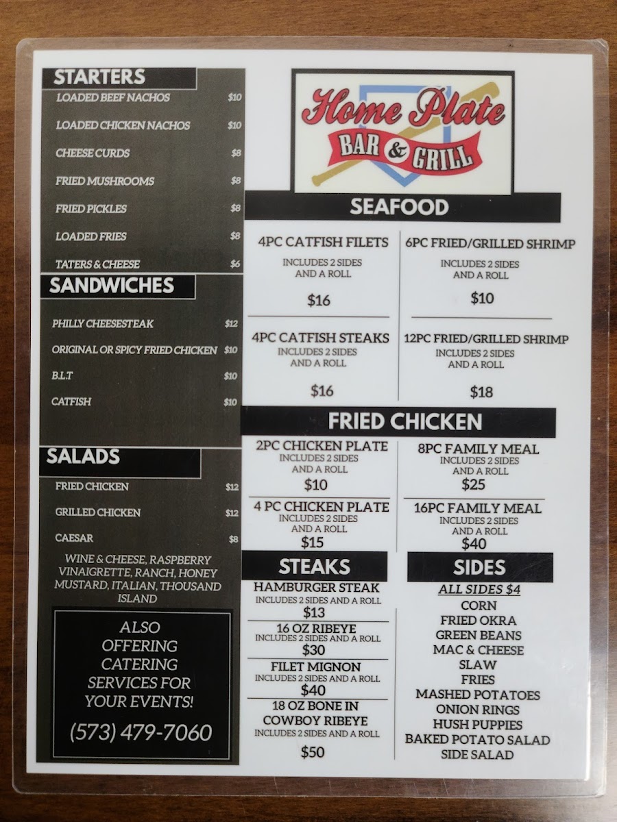 At Home Plate Bar & Grill Menu, you'll find a delightful mix of comfort food with a twist, perfect for anyone looking to indulge in hearty, flavorful dishes. Located at 1710 MO-84 in Hayti, MO, this local gem has something for everyone, whether you're stopping by for a quick bite or enjoying a relaxed evening with friends. From sizzling burgers and tender steaks to fresh salads and savory appetizers, every item is crafted with care and served with a side of good vibes. The menu features a wide range of mouthwatering options, making it the ideal spot for lunch, dinner, or even a late-night snack. Whether you're craving something familiar or in the mood to try something new, you'll leave feeling satisfied.